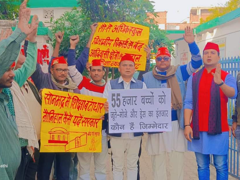 सोनभद्र में गुरुवार को समाजवादी पार्टी कार्यकर्ताओं द्वारा जिला सचिव के नेतृत्व में BSA कार्यालय पर प्रदर्शन किया। यह प्रदर्शन 55 हजार स्कूली बच्चों को कड़ाके की ठंड में भी जूता, मोजा, ड्रेस न मिलने को लेकर किया।